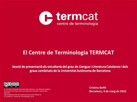 El termcat va néixer fa 40 anys per normalitzar el català en tots els àmbits de la vida. Des de 1994 el termcat és un consorci integrat per les dues institucions fundadores i el consorci per a la normalització lingüística. By mg franch 2010 — return to article details terminology for the catalan language 25 years of termcat download download pdf, And individuals professionals, researchers, etc.